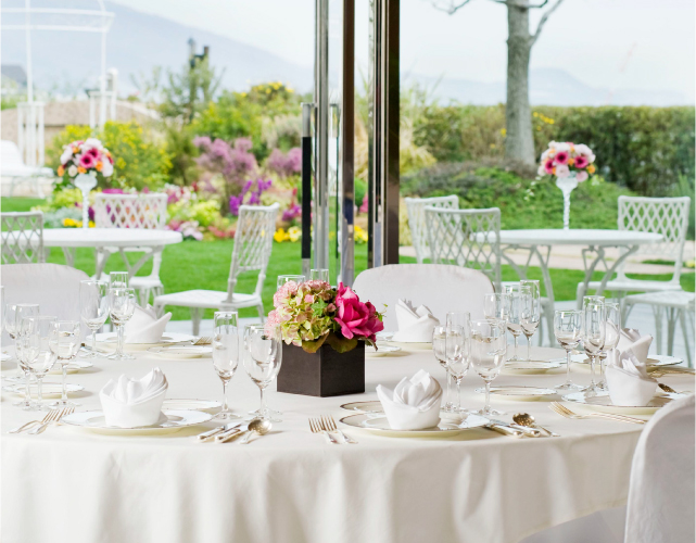 空と海のブルーに囲まれた緑の庭では季節の花々が訪れる人を優しくお出迎えします。ガーデンパーティやバーベキューなどを開放感溢れるお庭でお楽しみください。