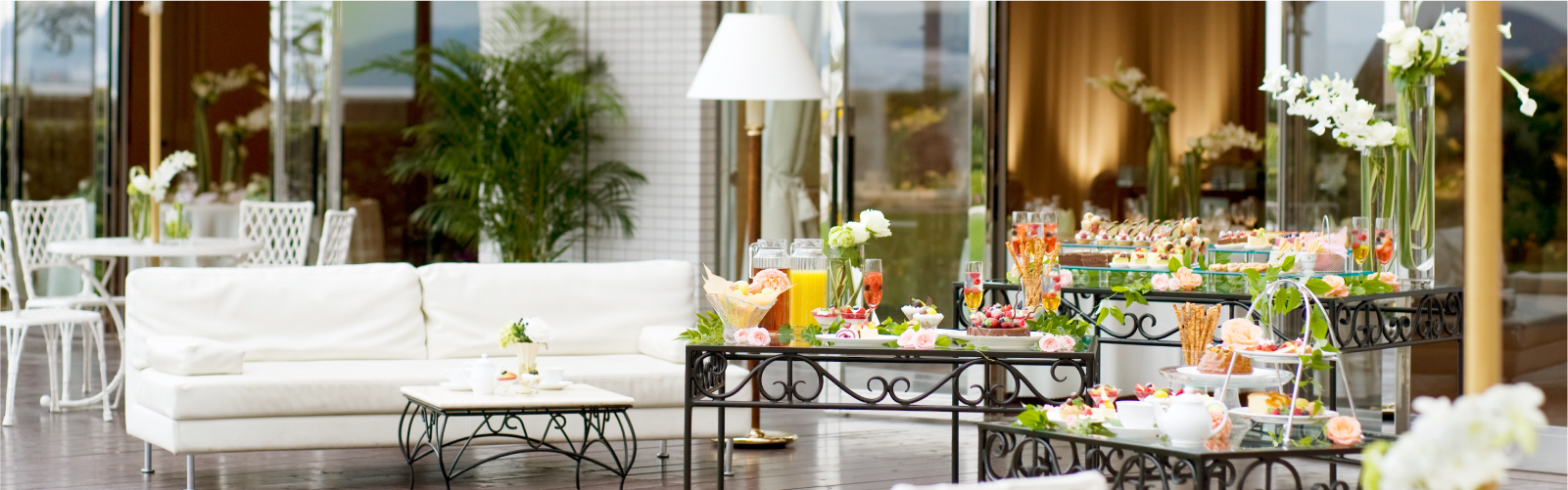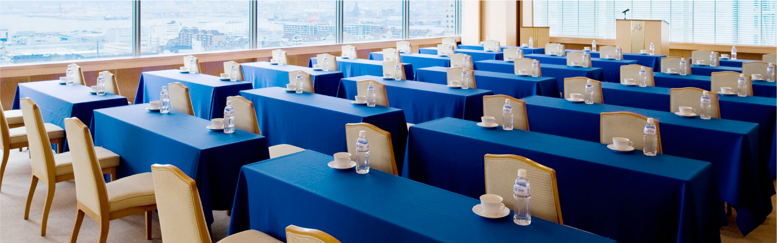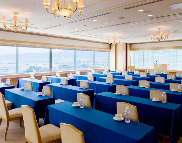 明るい日差しに芝生の緑が映えるガーデンサイドの宴会場、海と山が一望できる最上階に位置するスカイバンケットなど、正餐から立食までの華やかなパーティーはもちろん、レセプション、国際会議、社内ミーティングなど幅広くお使いいただけます。またロビー、宴会場及び全客室にはWi-Fi接続によるインターネット環境を完備しておりますので、ネットを利用しての各種会合などにもご利用いただけます。
