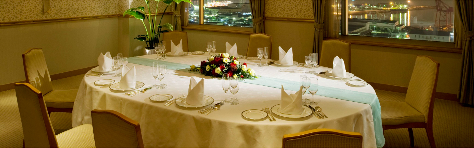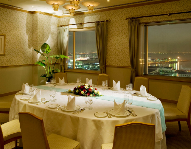 ビジネスシーンはもちろん、ご結納からウエディングのお食事会、法事までプライベートなお集りにもご利用いただけます。落ち着いたインテリアと最上階からの眺めが、充実のひとときをお約束します。