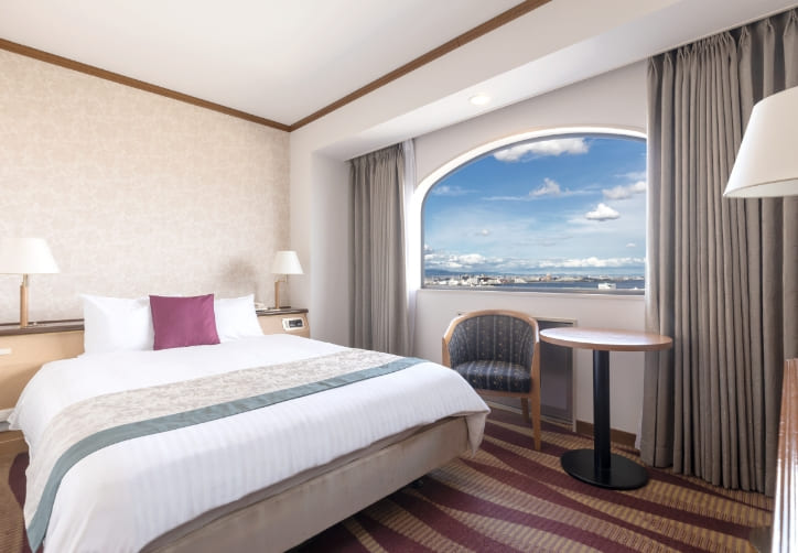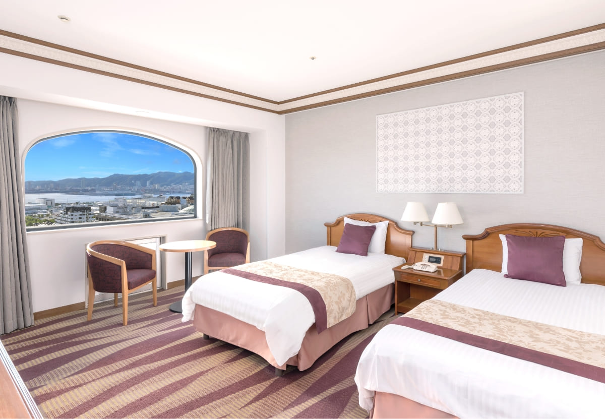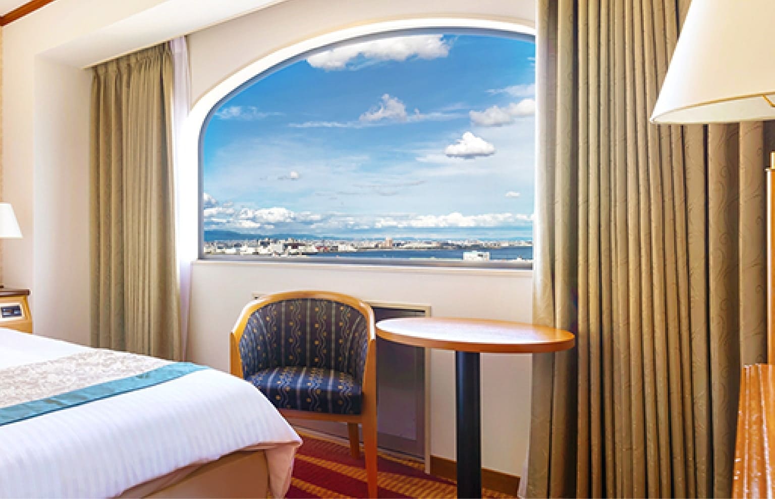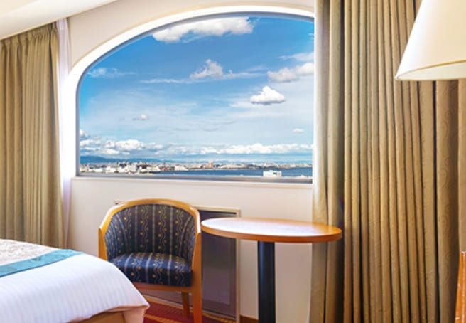 西向きのお部屋からは神戸港と山並に沈む夕日を一望。