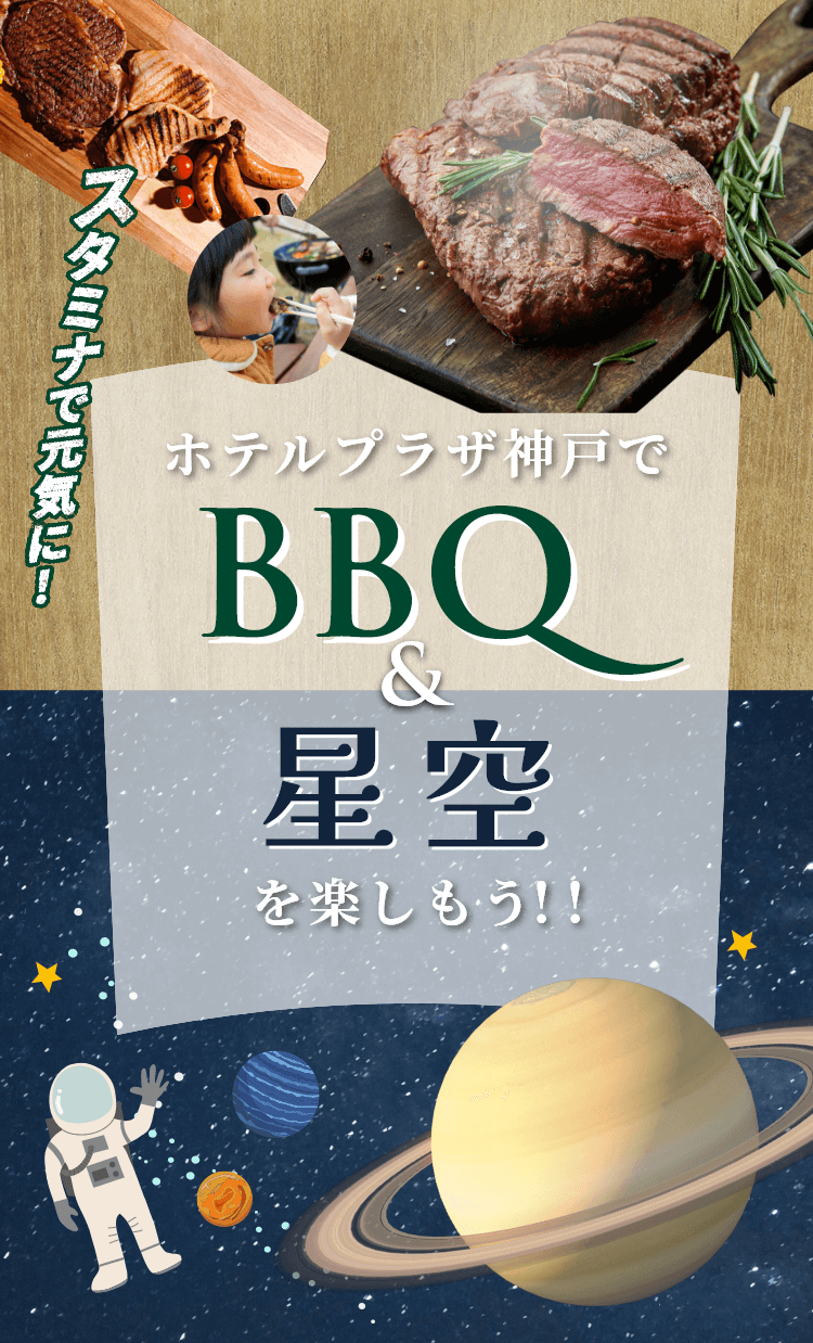 ホテルシェフ厳選食材を使用。リーズナブルなプランから、“黒毛和牛”や地元ブランド“神戸牛”が堪能できる、豪華プランもご用意しております。料理長特製のオリジナルバーベキューソースもおすすめです。