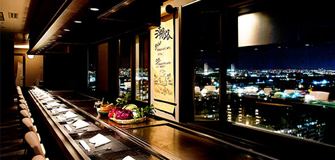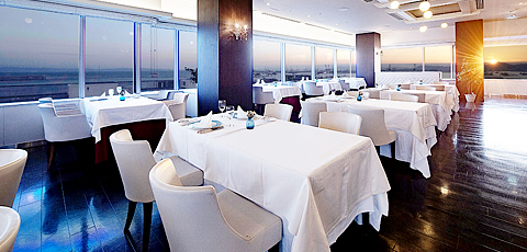 海の風景を満喫できる最上階のメインダイニング。パノラマに広がる眺望は「みなと神戸」の特等席。