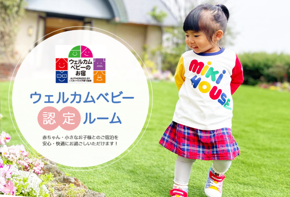 小さなお子様連れのご家族がより快適に楽しくお過ごしいただけるようウェルカムベビー認定ルームをご用意! ご家族の皆様で素敵な思い出をつくっていただけるようスタッフ一同サポートいたします。
