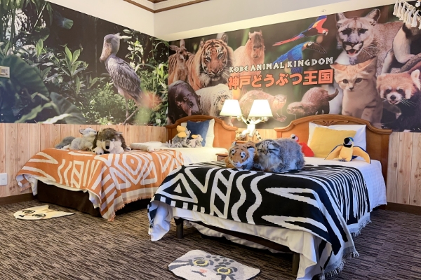 「神戸どうぶつ王国」入園券もセットになった、動物園色にカスタマイズされたコラボルーム
