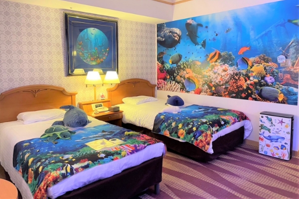 まるでお部屋が水族館!?かわいいお魚たちにエサやりができるマリン仕様の特別ルーム