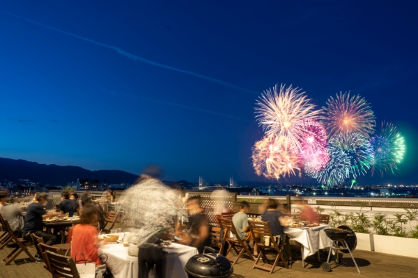 黒毛和牛BBQを楽しみながら、迫力満点の花火鑑賞