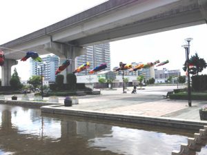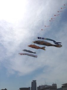 ここ六甲アイランドでも人工の川の上に多くの鯉のぼりが、気持ちよさそうに泳いでいます。