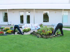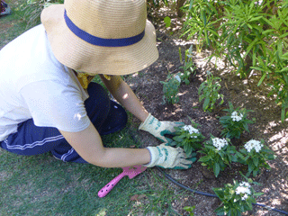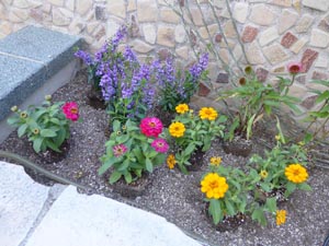 やっと地面に植えてもらって、ほっとした様子のお花たち(*^_^*)