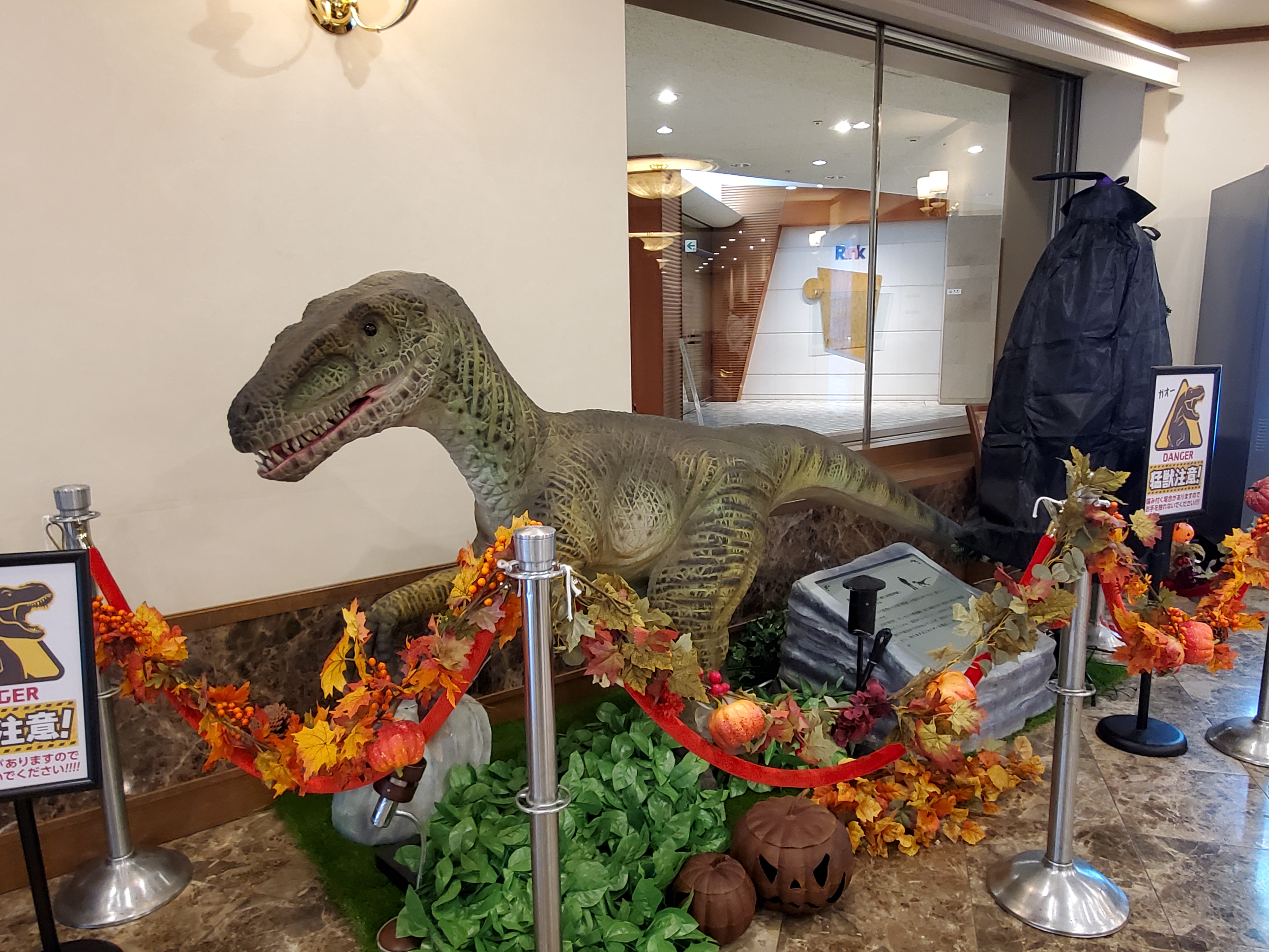 ホテルプラザ神戸のロビーに居るダイナソーもハロウィン仕様になっております😄