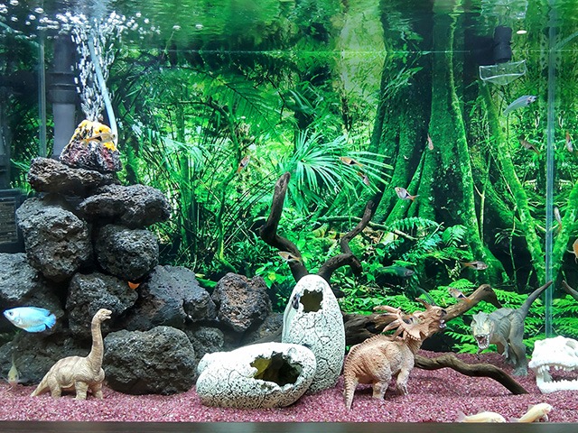 可愛い熱帯魚や淡水魚がライトアップした水槽でお出迎えしてくれます😍