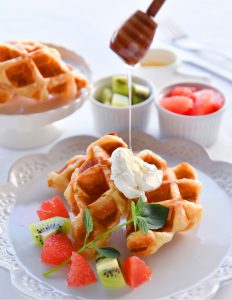 蜂の巣から搾りたての天然ルーマニア産アカシアはちみつ、フルーツやナッツ、シロップやソースなどと一緒にお好みに合わせて召し上がっていただくのもオススメです。