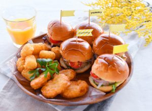 好きな具材を選んでオリジナルのミニハンバーガーを作ったり、チキンナゲットやハッシュドポテトとセットにしたり。お子さまにもお楽しみいただけます。