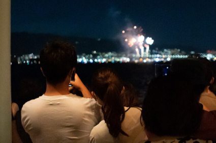 海の上から眺める花火は、迫力もロマンチックさも段違い。視界をさえぎるものがなく、まるで自分だけのプライベート花火大会のような気分になれますよ。