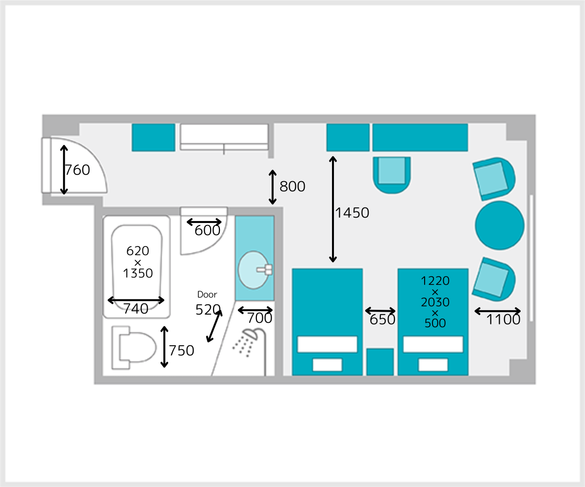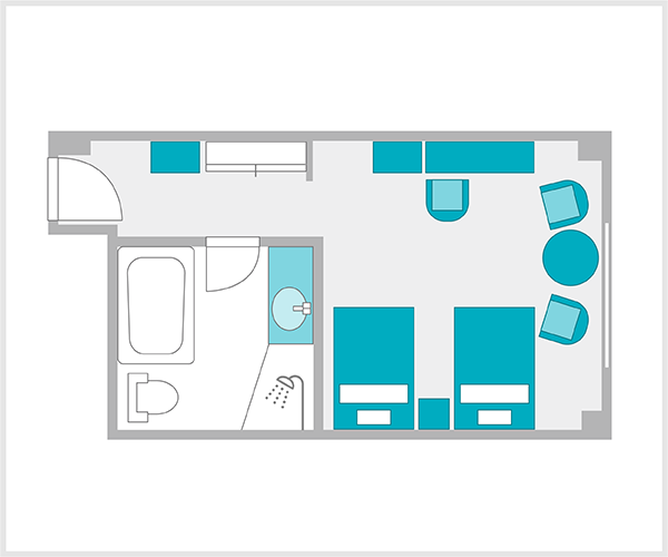 独立したシャワーブースを設置しているデラックスタイプのツインです。