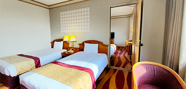 ゆとりあるツインルームを中心に、全139室はすべてヨーロッパのインテリアデザインで、落ち着いたくつろぎの時間をお約束します。