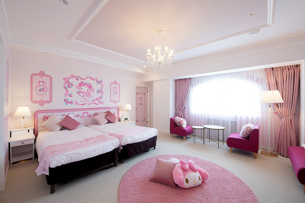 サンリオの人気キャラクター「マイメロディ」「ポチャッコ」「タキシードサム」「けろけろけろっぴ」「バッドばつ丸」「ハンギョドン」「あひるのペックル」の 7 人のキャラクターとコラボレーションした「サンリオキャラクターズ ルーム」