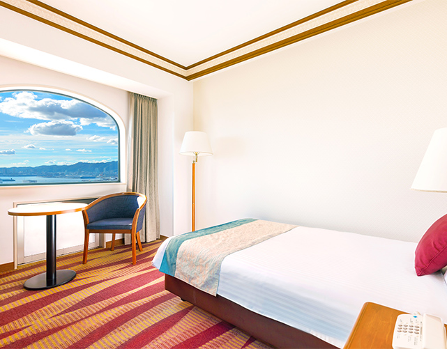 ビジネスユースにも適した、機能性の高いシングルルームからは神戸港側の夜景が広がります。神戸の町並みを眺めるにはおすすめの客室です。