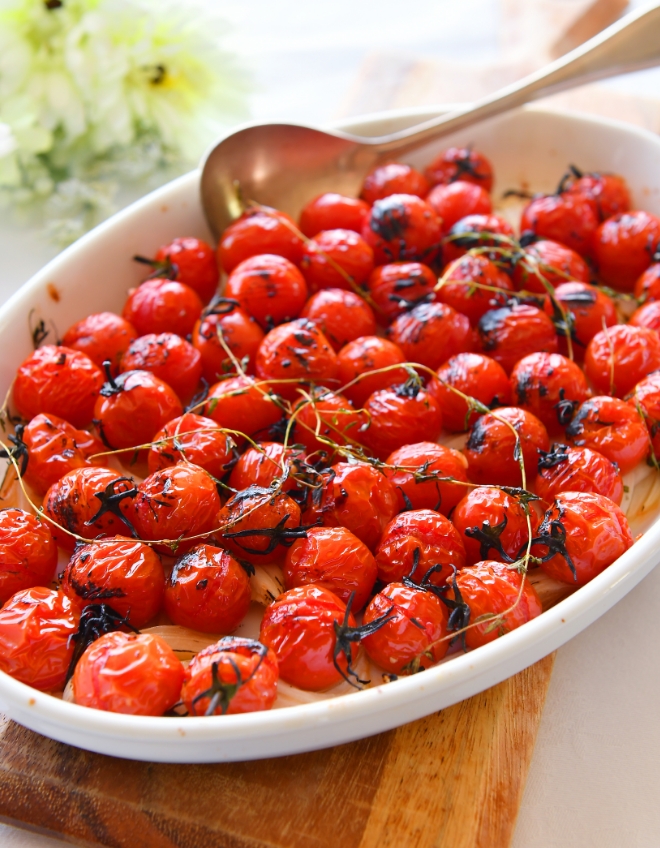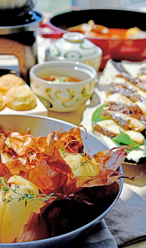 甘みたっぷりの淡路玉ねぎを丸ごとオーブンでじっくりと焼き上げ、ハーブをまぶして、より一層甘みを引き立てました。トロっとやわらかい玉ねぎはぺろりと食べられます。