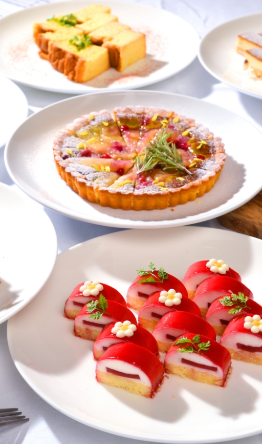 メープルシロップの優しい甘さが魅力のプリン。上質なクリームチーズを使用したチーズケーキはサクサクのサブレに、さわやかな甘みを感じられるサルタナレーズンがアクセント。KARINのパウンドケーキやシフォンケーキもお召し上がりいただけます。
