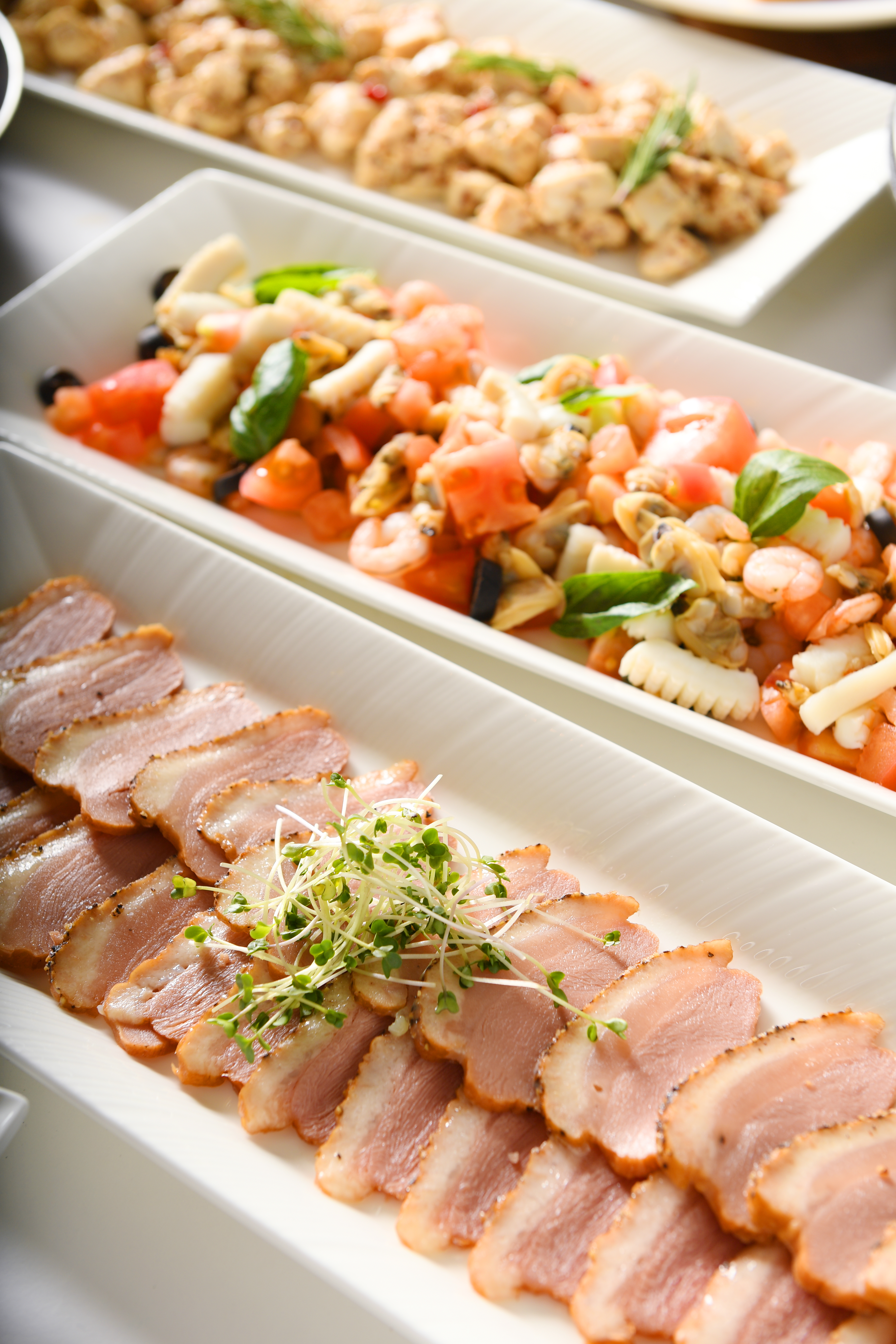 鮮魚や季節の野菜を使った冷製メニューが多彩に並びます。