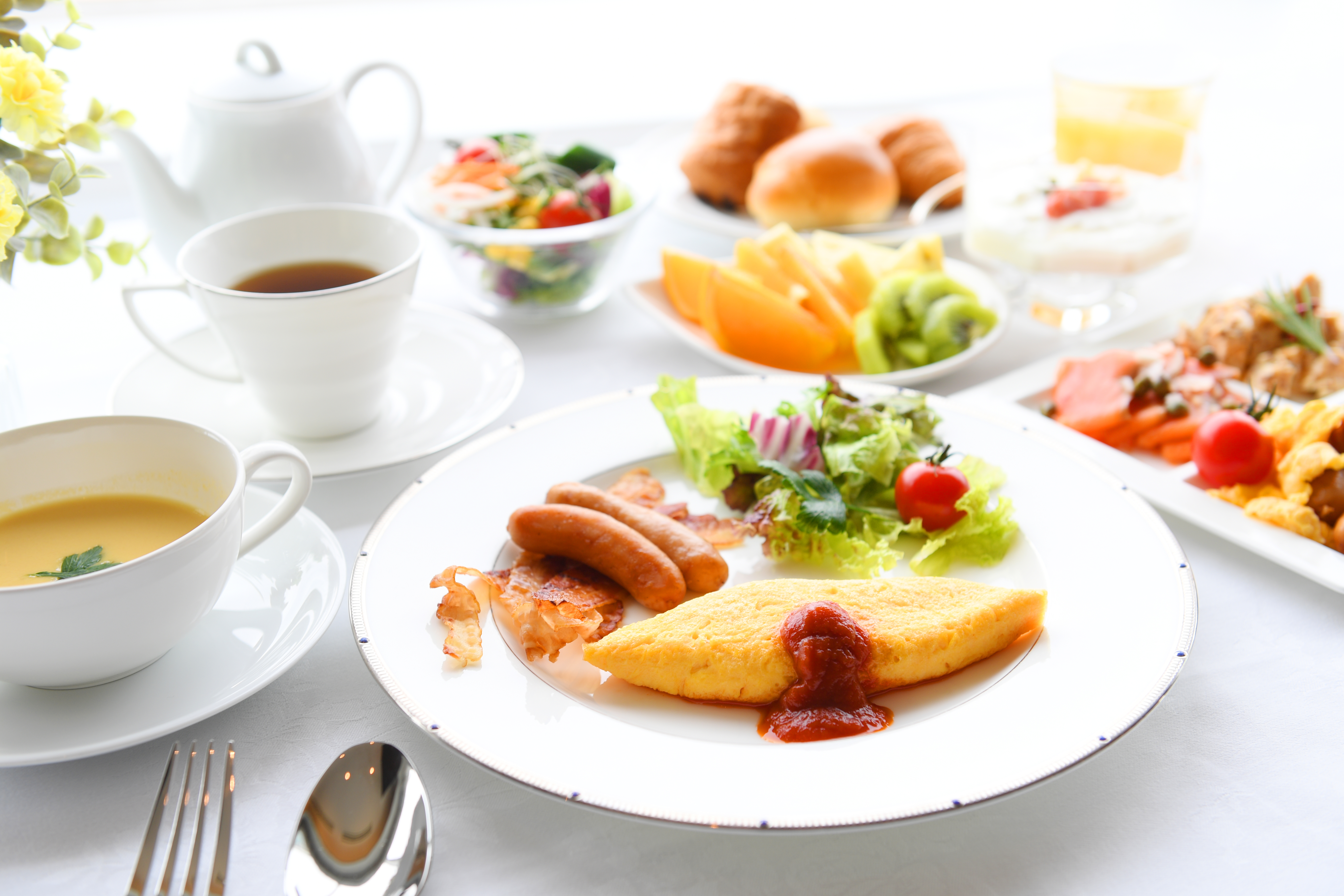 焼きたてふわふわのオムレツや朝から贅沢なお肉料理など、