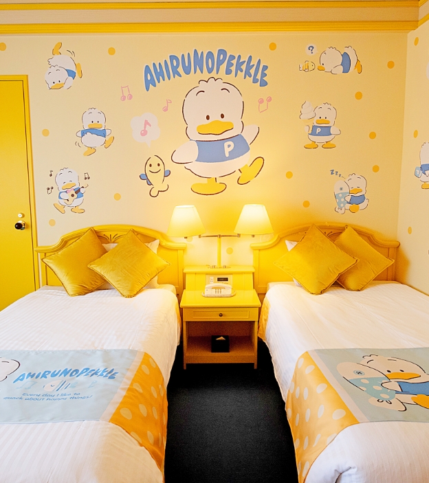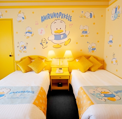 イエローとブルーのさわやかな配色がポイント。歌とダンスが大好きなペックルがたくさん詰まったお部屋です。ふんわり優しいタッチのテイストが、旅の疲れを癒してくれます。