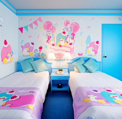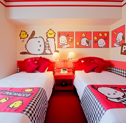マイメロディルームは、43.7㎡のゆったりとしたコーナーツインルーム。