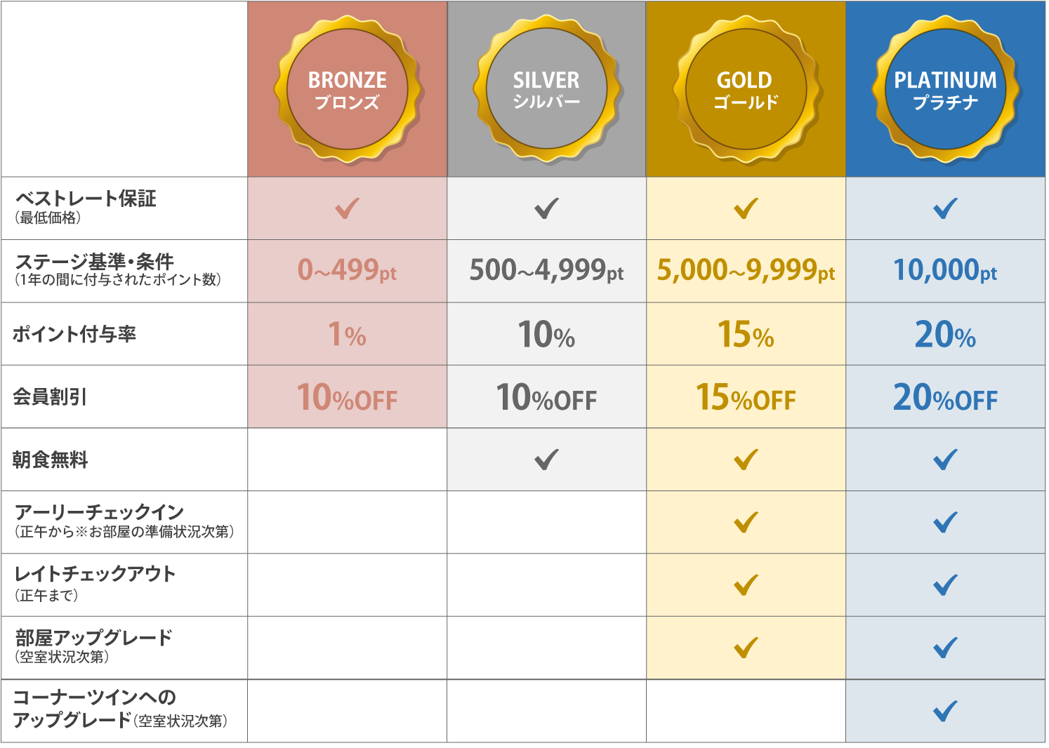 ※ランクアップ、ダウンは1年に1回、会員登録月の1日から1年後の深夜に行われます。